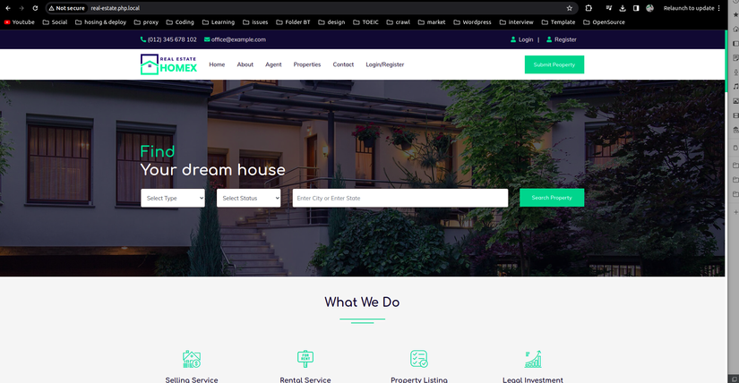 Truy cập vào địa chỉ http://real-estate.php.local/ trên browser để xem website: