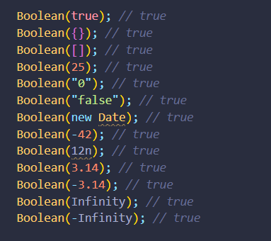 - JavaScript sử dụng Type conversion(chuyển đổi dữ liệu từ kiểu dữ liệu này sang kiểu dữ liệu khác) để ép giá trị bất kỳ thành một giá trị Boolean trong một ngữ cảnh yêu cầu giá trị Boolean.