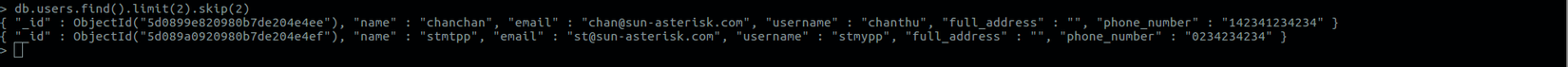 method skip() dùng để lấy ra số document trong kết quả từ vị trí thừ bao nhiêu và bỏ qua các document trước bị trí đó