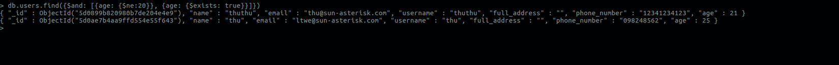 Truy vấn này sẽ chọn tất cả document trong collections user thỏa mãn điều kiện: