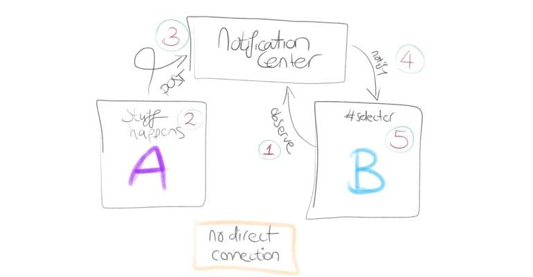 Hãy nhớ rằng các notifications là rõ ràng, vì vậy bạn luôn observe một loại notification dẫn đến gọi một func trên một object (thường là self) khi notification xảy ra.