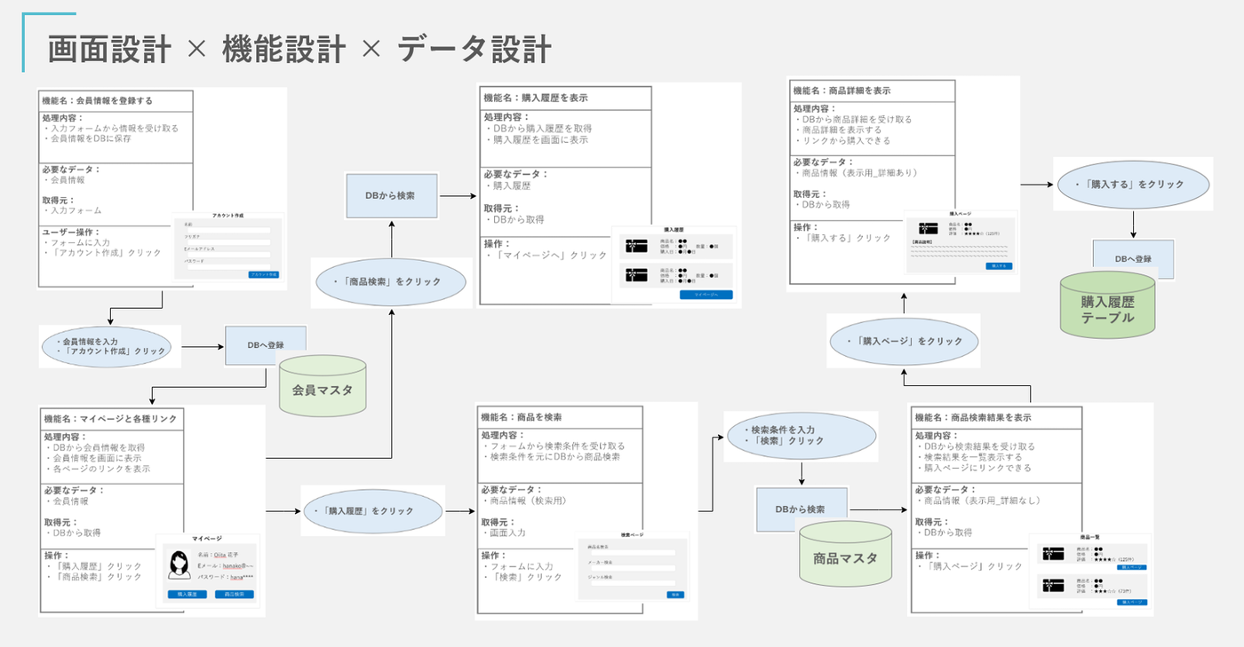 Cuối cùng, nếu bạn tổ chức "mối quan hệ giữa cơ sở dữ liệu và sơ đồ chuyển đổi màn hình", Bạn có thể thấy toàn bộ hệ thống "thiết kế màn hình x thiết kế chức năng x thiết kế dữ liệu".