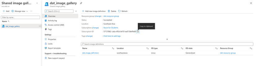 Sau khi tạo xong, quan sát trong image gallery, ta sẽ thấy có mục image definition, đây sẽ là resource tiếp theo mà ta cần phải tạo/ Về cơ bản ,thì image definition là một nhóm các version của một image; nó chứa các thông tin chung về image như base type (linux hay windows) ...