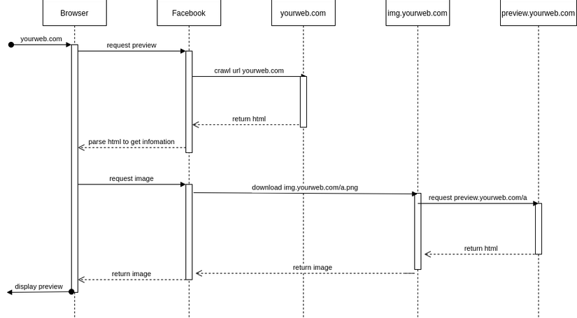 - Facebook trả về các thông tin trang web vừa lấy được cho browser để hiển thị preview bài đăng cho bạn.