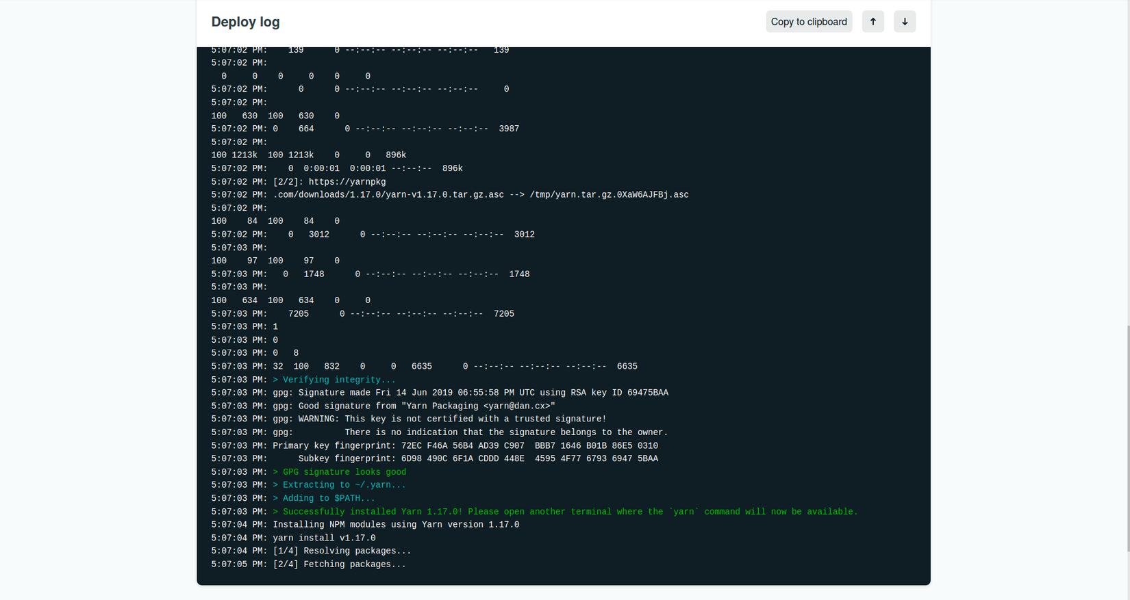 Bạn có thể vào trang Deploy Log để xem quá trình build ứng dụng