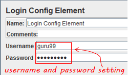 Ví dụ: bạn muốn mô phỏng một người dùng đăng nhập vào trang web www.facebook.com bằng username và password. Bạn có thể sử dụng Login Config Element để thêm cài đặt username và password này trong yêu cầu người dùng: