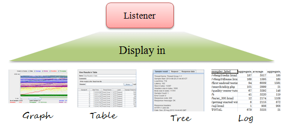Listener hiển thị kết quả thực hiện test. Nó có thể hiển thị kết quả ở định dạng khác nhau như cây, bảng, biểu đồ hoặc file log.