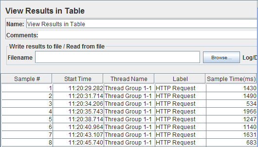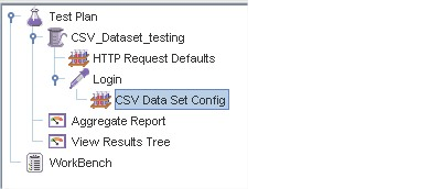 - CSV Data Set Config: Giả sử bạn muốn kiểm tra một trang web cho 100 người dùng đăng nhập bằng các thông tin đăng nhập khác nhau. Bạn không cần phải ghi lại kịch bản 100 lần! Bạn có thể tham số hóa tập lệnh để nhập thông tin đăng nhập khác nhau. Thông tin đăng nhập này (ví dụ: Tên người dùng, mật khẩu) có thể được lưu trữ trong một tệp văn bản. JMeter có một yếu tố cho phép bạn đọc các tham số khác nhau từ tệp văn bản đó. Đó là "CSV Data Set Config", được sử dụng để đọc các dòng từ tệp và chia chúng thành các biến.