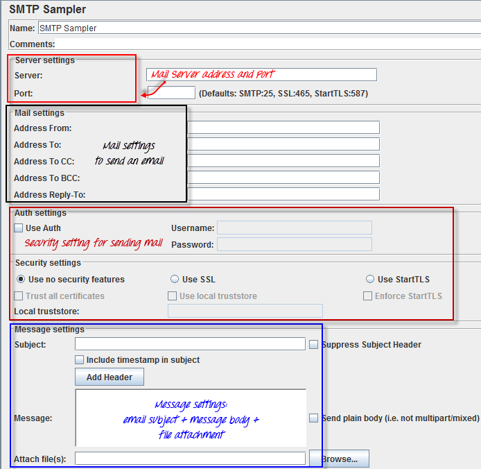 - SMTP Sampler: Nếu bạn muốn kiểm thử một mail server, bạn có thể sử dụng SMTP sampler. Sampler này được sử dụng để gửi email bằng giao thức SMTP.