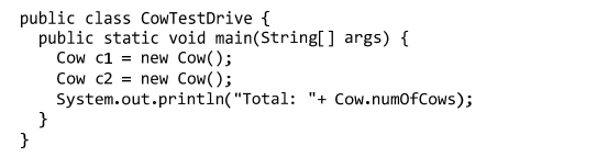 Như các phương thức mà ta đã quen dùng, để gọi getCount(), người ta sẽ cần đến một tham chiếu kiểu Cow và kích hoạt phương thức đó cho một đối tượng Cow.