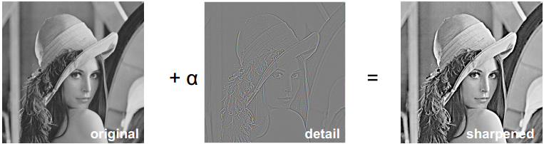 Trong phần này, ta sẽ được giới thiệu về filter có tác dụng làm sắc nét các cạnh, cạnh có thể hiểu là chỗ giao chuyển từ mức sáng này sang mức sáng khác. Các bước làm để tạo ra unsharp masking sẽ như hình dưới.
