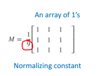 Một m x n box filter là một mảng kích thuớc m x n số 1 với hằng số chuẩn hóa ở phái trước có giá trị là 1 chia cho tổng giá trị các hệ số trong mảng ( tức là 1/mn khi tất cả các hệ số đều là 1). Bên dưới ta có 1 ví dụ về box filter kích thước 3 x 3.