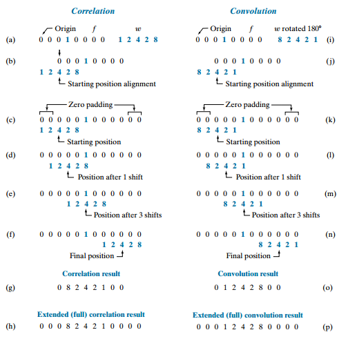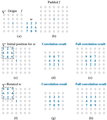 Điều đầu tiên chúng tôi nhận thấy là một phần của nằm ngoài , do đó, tổng không được xác định trong khu vực đó. Một giải pháp cho vấn đề này là pad hàm với đủ 0 ở hai bên. Nói chung, nếu hạt nhân có kích thước , chúng ta cần số ở hai bên của để xử lý các cấu hình bắt đầu và kết thúc của đối với . Hình (c) cho thấy một chức năng pad đúng. Hình (c) cho thấy tâm của kernel phải trùng với pixel ta cần sửa ở đây à pixel đầu tiên.
