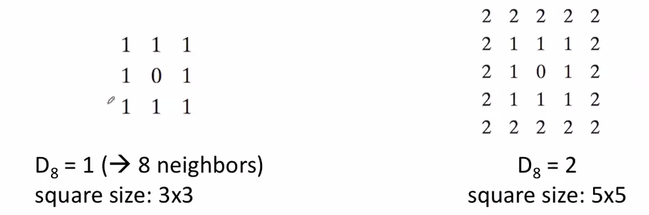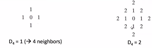 Nhưng nếu ta muốn định nghĩa về các điểm lận cận xa hơn điểm (x,y) thì làm như thế nào ?. Vì vậy, ta có thêm định nhĩa mới là khoảng cách giữa 2 điểm ảnh.