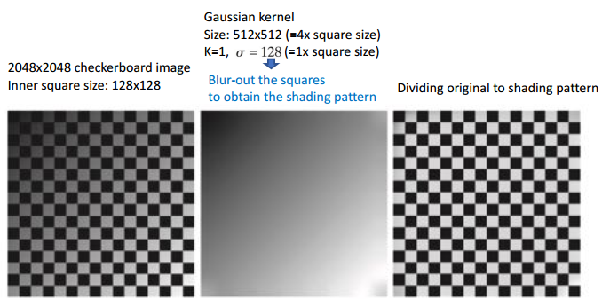 Một ứng dụng khác của Gaussian filters là Shading correction ( chỉnh sửa bóng). Như ví dụ sau: