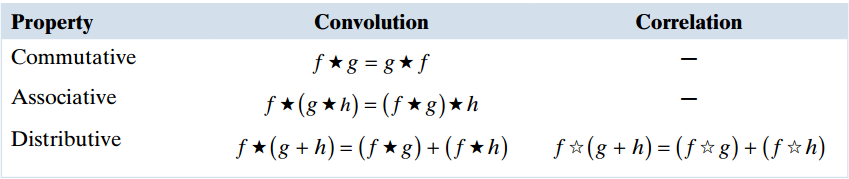 Các tính chất cơ bản của Convolution và Correlation như sau: