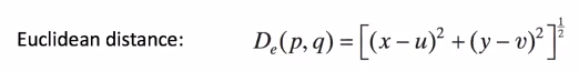 Khoảng cách giữa 2 pixcel ta có dùng công thức Euclidean: