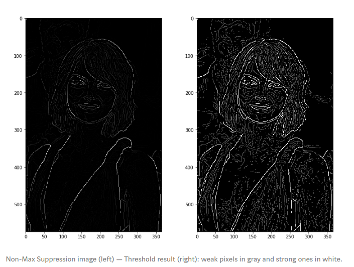 - So sánh độ lớn cạnh của điểm (x,y) hiện tại với điểm lân cận theo hướng của cạnh và hướng ngược lại . Ví dụ nếu có thì 2 điểm lân cận phía sau và phía trước của điểm hiện tại được so sánh. Nếu độ lớn của cạnh của điểm (x,y) là lớn nhất thì điểm đó là cạnh, ngược lại thì không phải là cạnh.