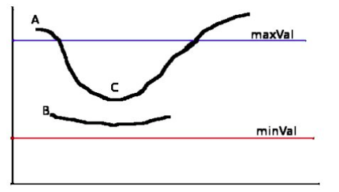 Lọc ngưỡng: Các điểm cạnh được lựa chọn trong bước 3 hầu hết là những cạnh thực, tuy nhiên vẫn còn những điểm cạnh bị chọn sai vì nhiễu hoặc do biến đổi màu sắc trên bề mặt của một đối tượng. Cách đơn giản nhất để phan biệt chúng là sử dụng một ngưỡng mà chỉ những điểm cạnh nào có độ lớn lớn hơn ngưỡng này thì được giữ lại. Thuật toán tách cạnh Canny sử dụng ngưỡng kép bao gồm một ngưỡng cao và một ngưỡng thấp. Những điểm nào có độ lớn cạnh lớn hơn ngưỡng cao được đánh dấu là cạnh mạnh (strong edge). Những điểm nào nào có độ lớn năm giữa hai ngưỡng được đánh đấu là cạnh yếu (weak edge).