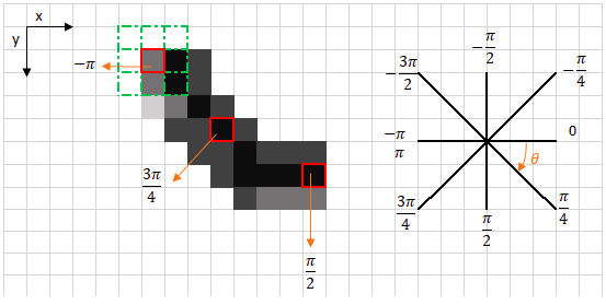 - Làm tròn hướng cạnh tới góc là bội của gần nhất tương ứng chỉ tới 8 điểm lân cận.