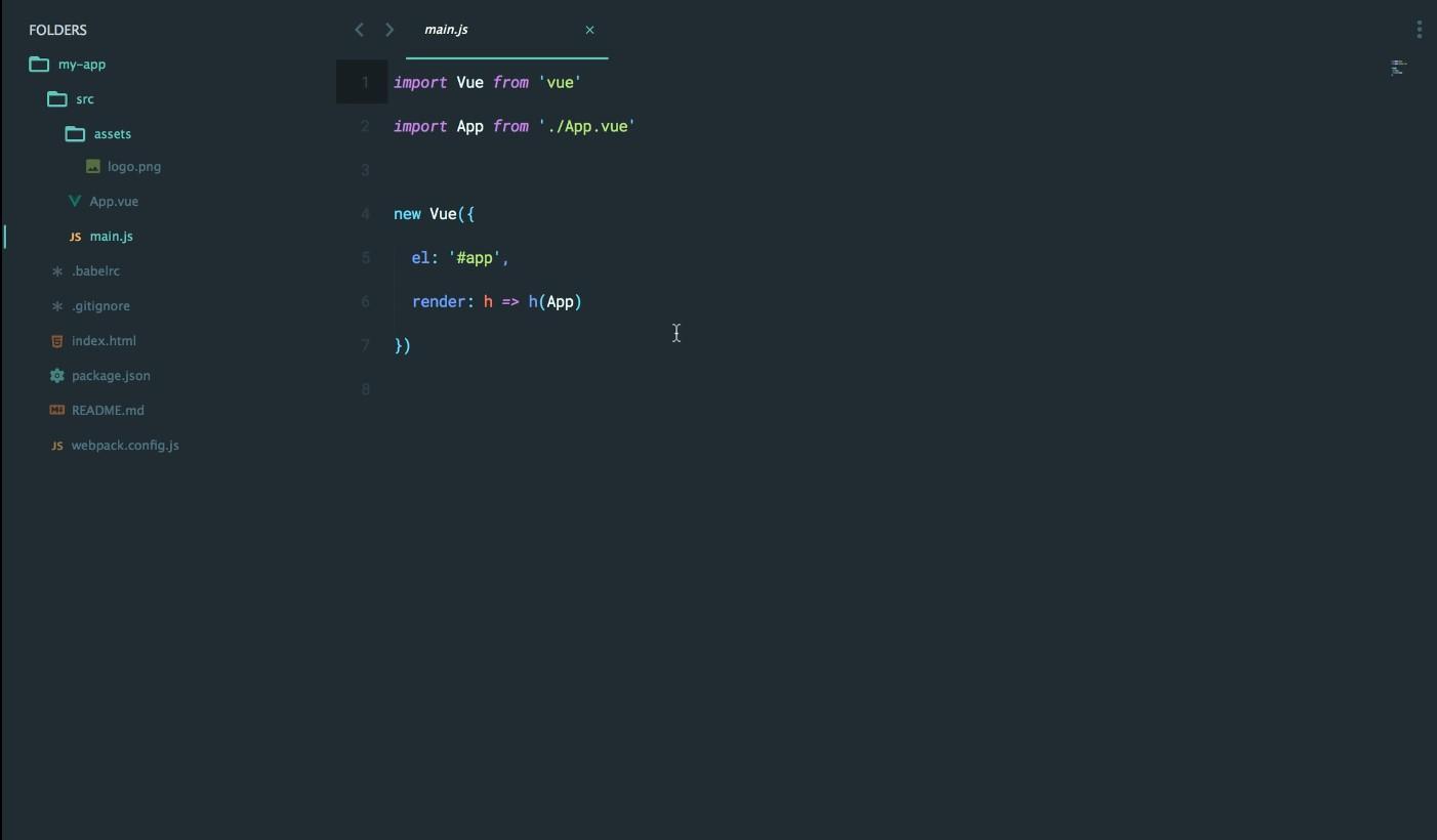 Ở file main.js chúng ta sẽ cùng bắt đầu tìm hiểu cách dùng theo web-pack. Các bạn có thể thấy trong file có thể import các file để sử dụng, cũng như khai báo new Vue