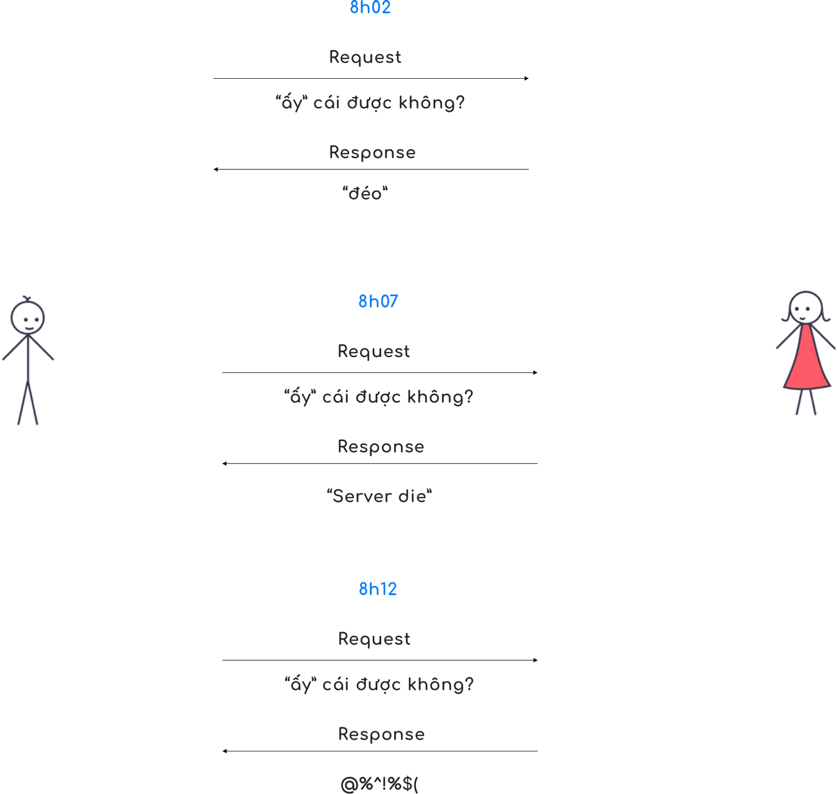 - Bước 3: Nếu hết thời gian chờ, ba má chưa có câu trả lời thì em (server) vẫn phản hồi cho anh kết quả là "đéo".