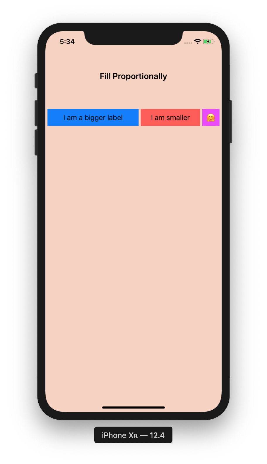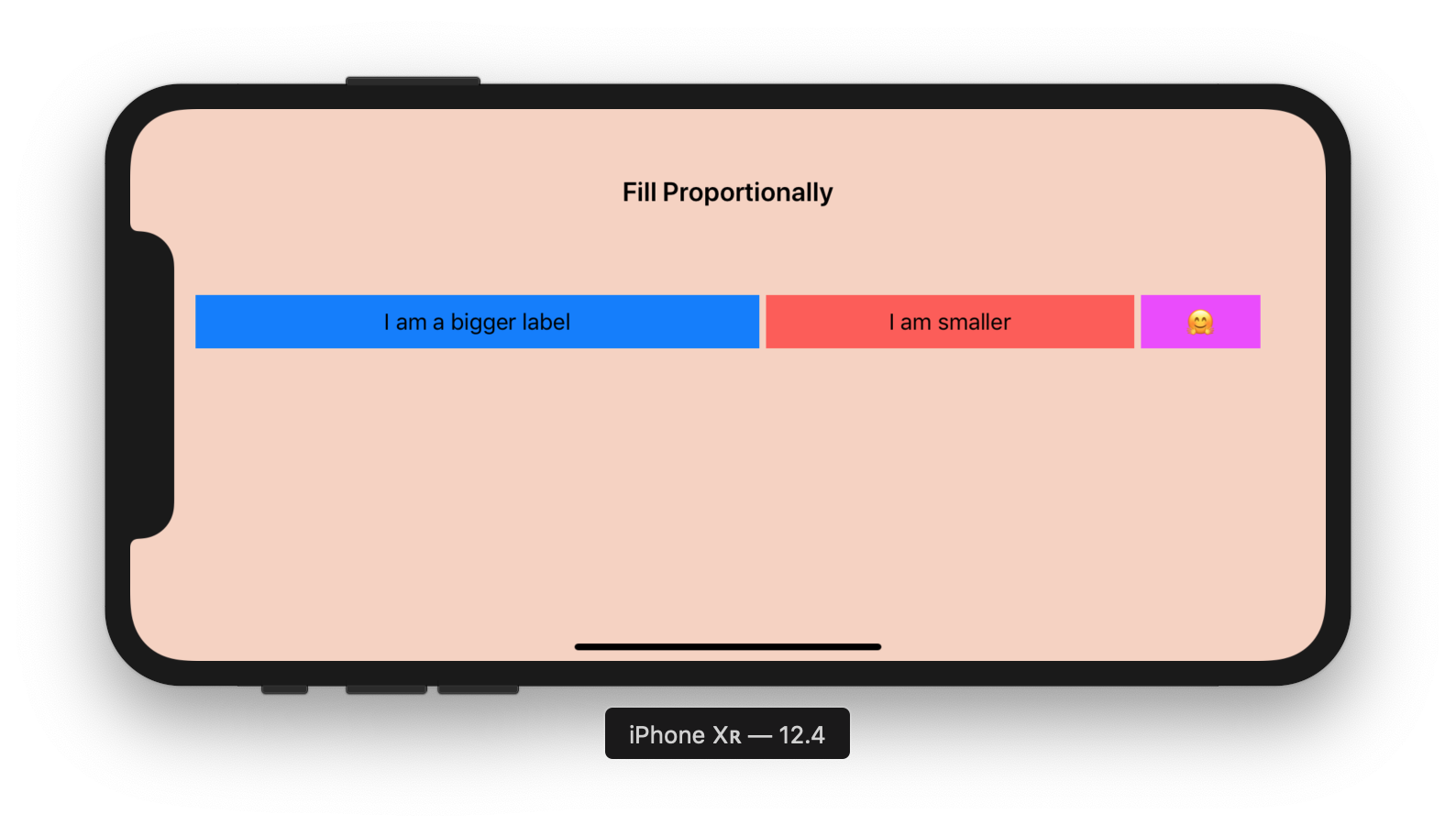 Đây là kiểu khá thú vị. Sẽ khó nhận thấy hiệu ứng nếu không thử các IPhone kích thước khác nhau và các hướng khác nhau. Fill Proportionally đảm bảo các subview sẽ được giãn ra với tỉ lệ bằng nhau khi layout của bạn giãn ra hay co lại.