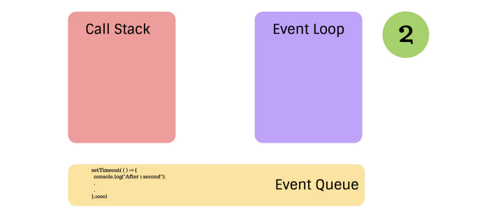 Khi setTimeout() đợi được 1 giây, nó sẽ di chuyển đến event queue