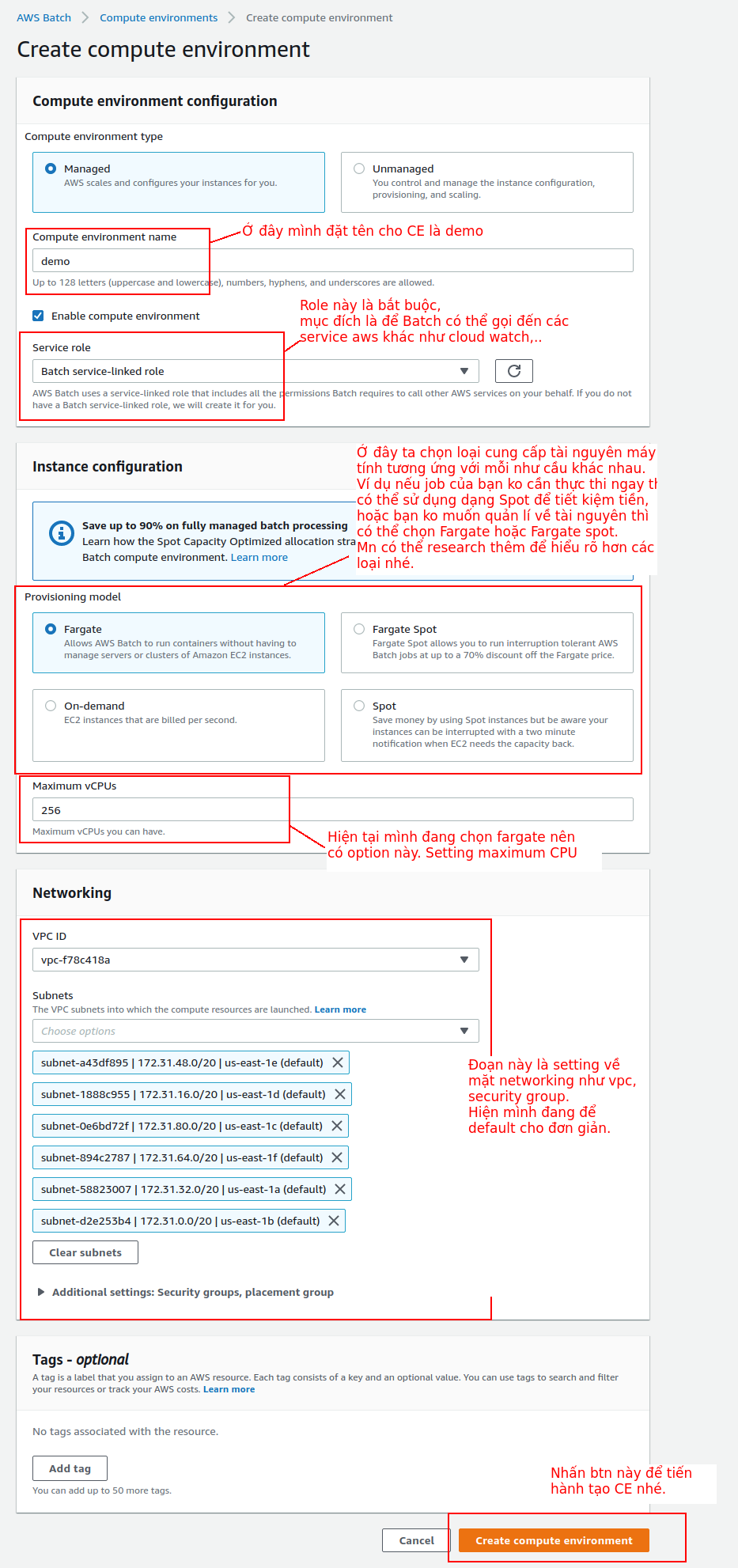 Tạo Compute enviroment: https://console.aws.amazon.com/batch/home?region=us-east-1#compute-environments/new
