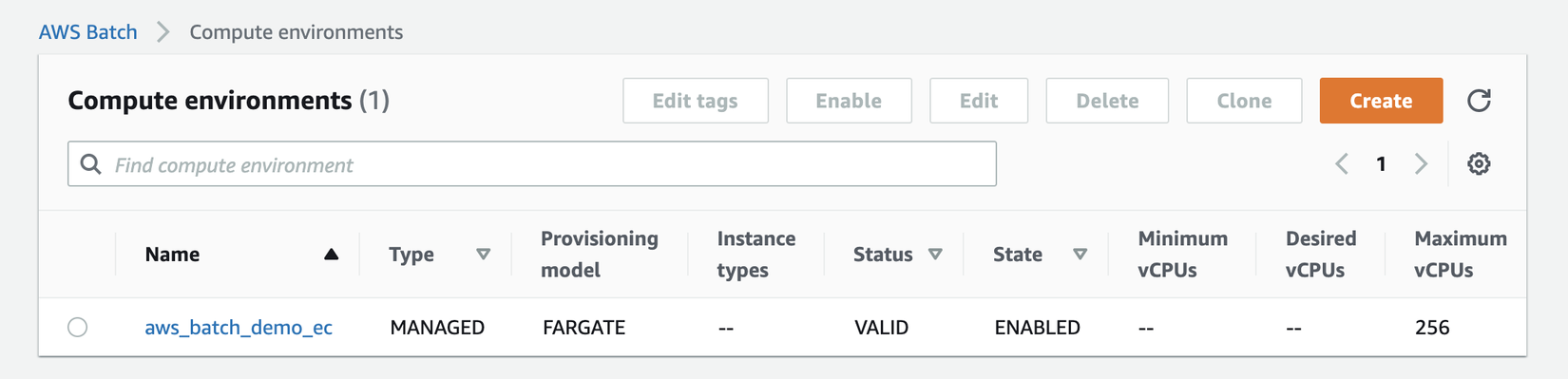 Tạo compute environment