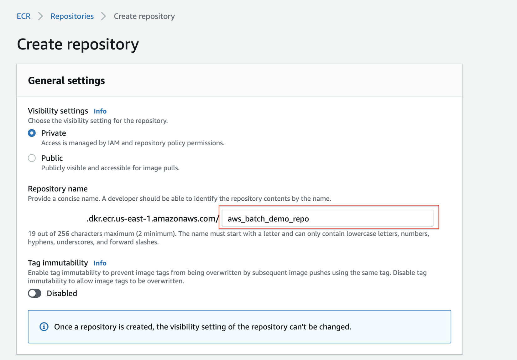 docker tag aws_batch_demo 12345679.dkr.ecr.us-east-1.amazonaws.com/aws_batch_demo_repo -