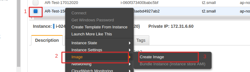 Chon instance mà bạn muốn nâng cấp RAM > Chọn Image > Create Image