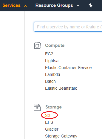 Sau khi đã có tài khoản bước tiếp theo bạn sẽ phải tạo S3 Bucket nơi lưu trữ các file được tải lên. Trên thanh menu chọn Serviees ->S3