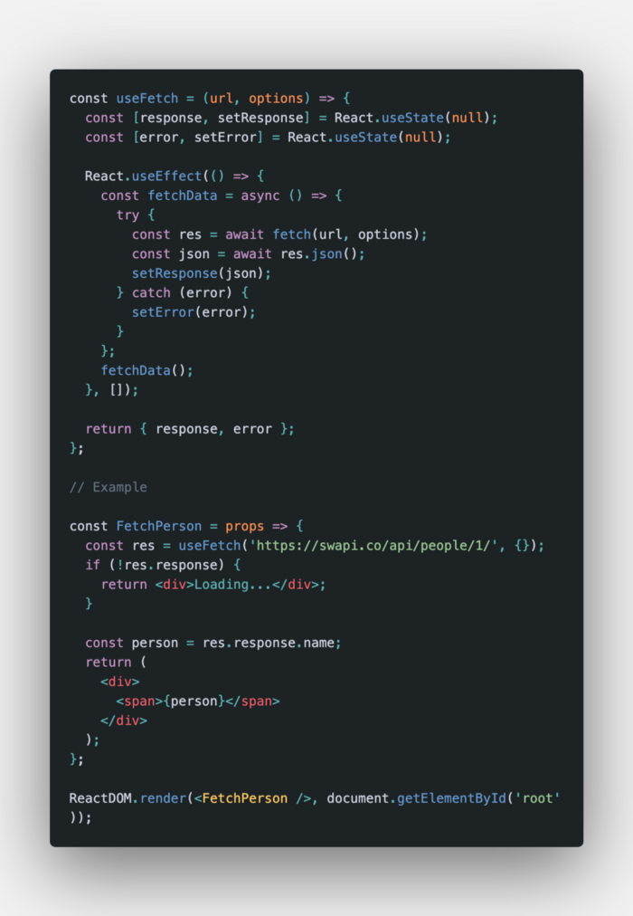 useFetch hook có thể được sử dụng để thực thi fetch theo cách khai báo.