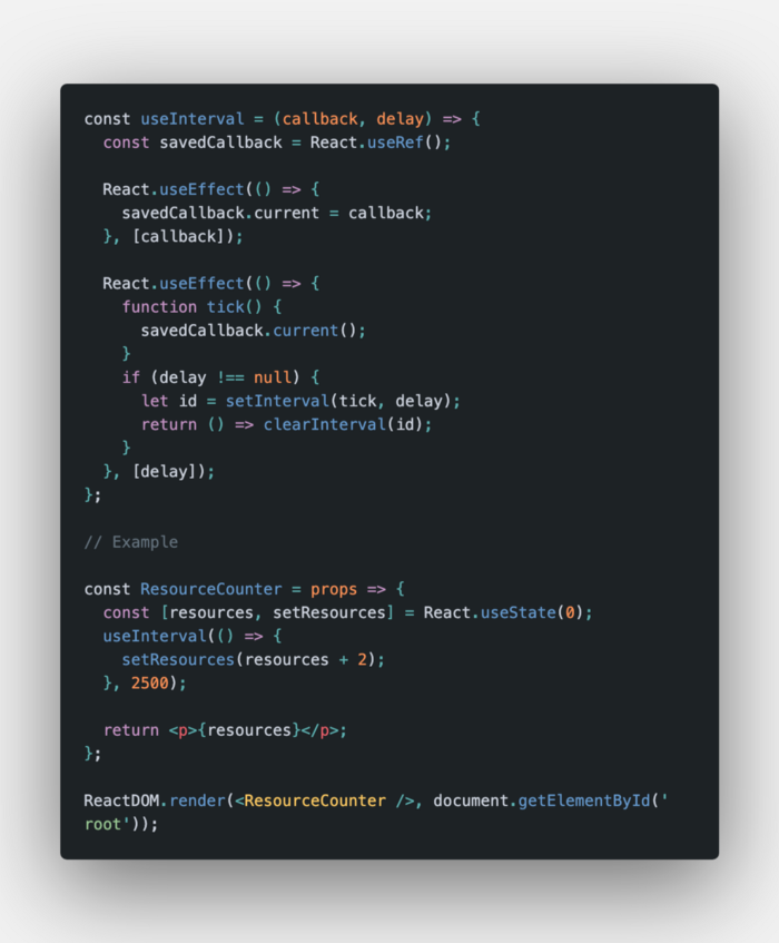 Nếu bạn muốn triển khai setInterval theo cách khai báo, bạn có thể sử dụng hook được gọi là useInterval.