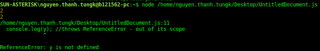 - Lỗi ở dòng 11 do tham chiếu tới biến y ở ngoài scope của nó.
