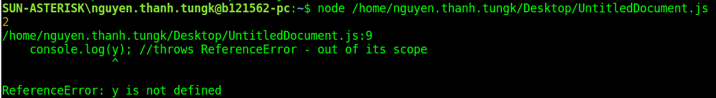- Lỗi ở dòng 9 do tham chiếu tới biến y ở ngoài scope của nó.
