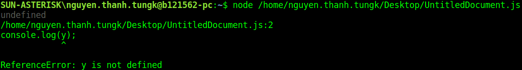 Trong JavaScript, tất cả các biến được khai báo bằng keyword var sẽ có giá trị ban đầu là undefined. Chúng có giá trị như vậy chính là do hoisting, việc khai báo các biến được đưa vào bộ nhớ và chúng được khởi tạo với giá trị là undefined. Chúng ta có thể thấy việc này qua ví dụ như sau. Ta có file UntitledDocument.js: