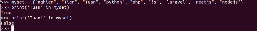 Kiểm tra phần tử có trong Set không bằng cách sử dụng in hoặc not in