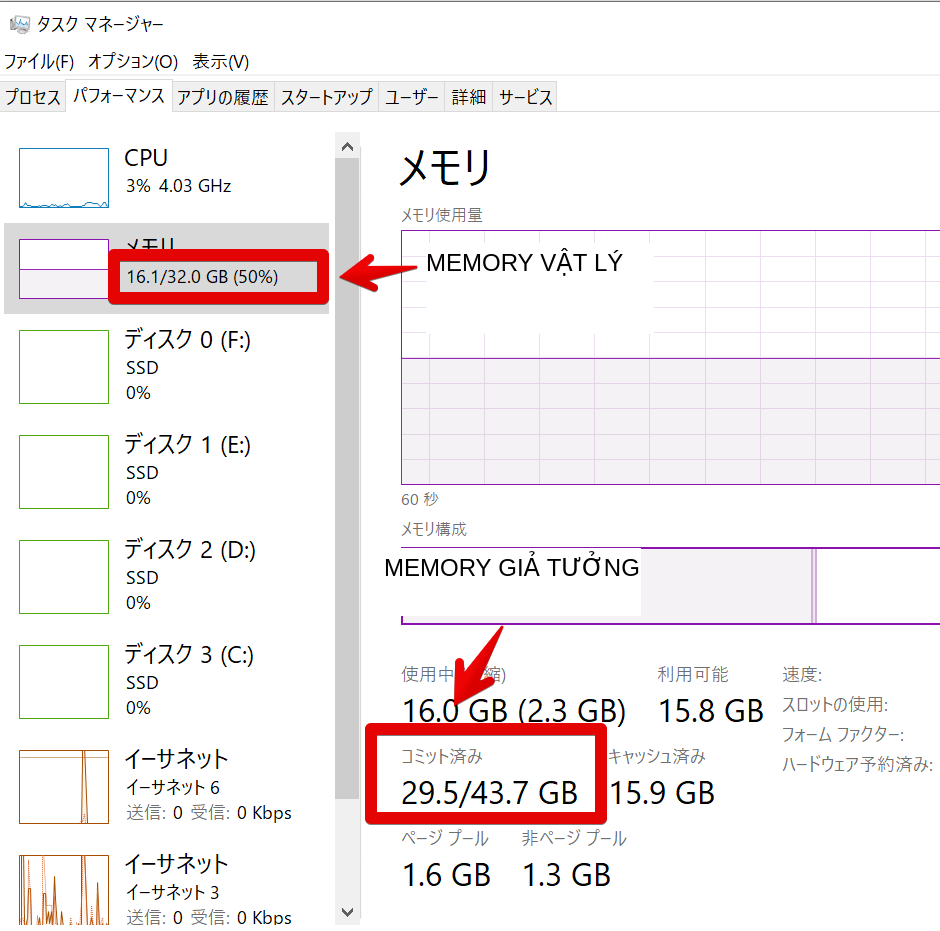 Dù không dùng default được ghi trong ini, nhưng tôi phán đoán không phải là memory vật lý mà là memory ảo, nên đã thêm MemoryMaxUsedVirtual và MemoryMinFreeVirtual.