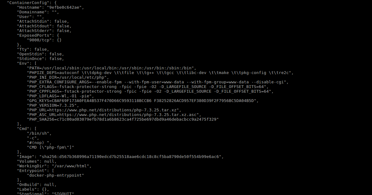 docker inspect image_name_or_id (docker inspect php:7.3-fpm)