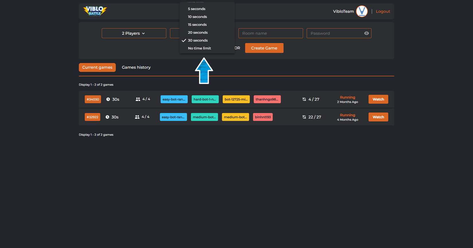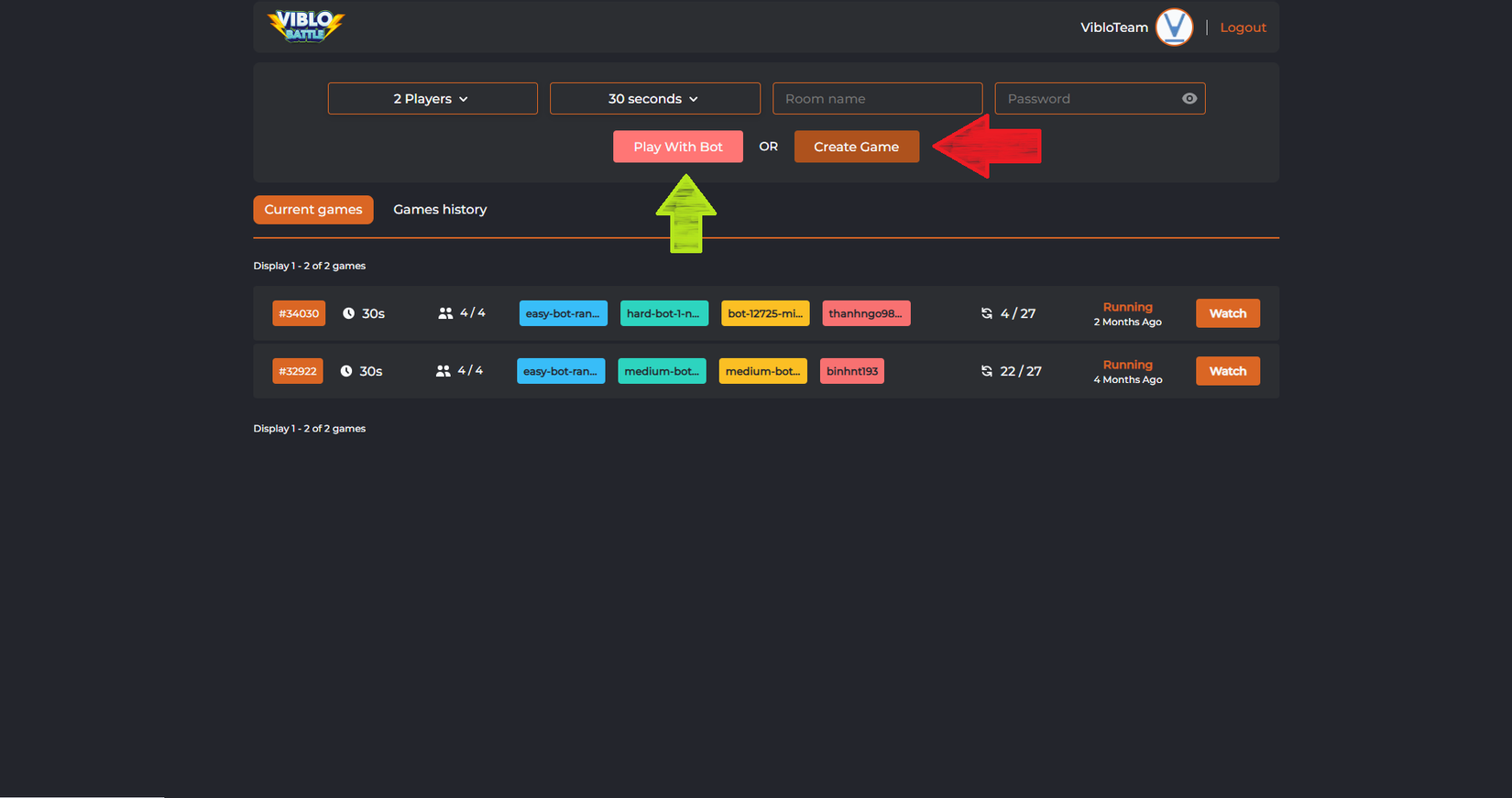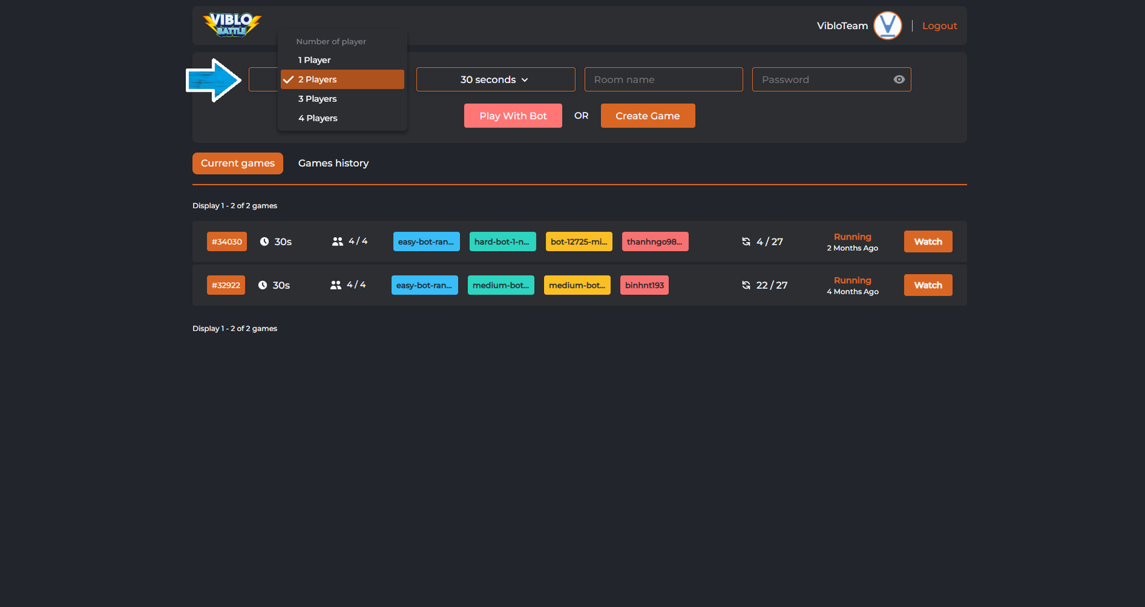Xem thêm: Mô tả về hạng mục Bot vs Bot trên Viblo Battle - Game Matrix