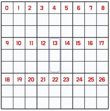 Như mọi người đã biết, bàn chơi của Matrix có kích thước 9x9, nhưng chỉ có 27 điểm đặt block (3 hàng và 9 cột). Nhiệm vụ của người chơi là kéo và thả các khối block vào đúng vị trí trong bảng như mô tả dưới đây: