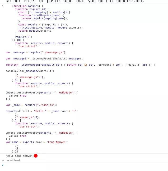 Mở terminal và chạy: node bundler.js sẽ được kết quả như này: