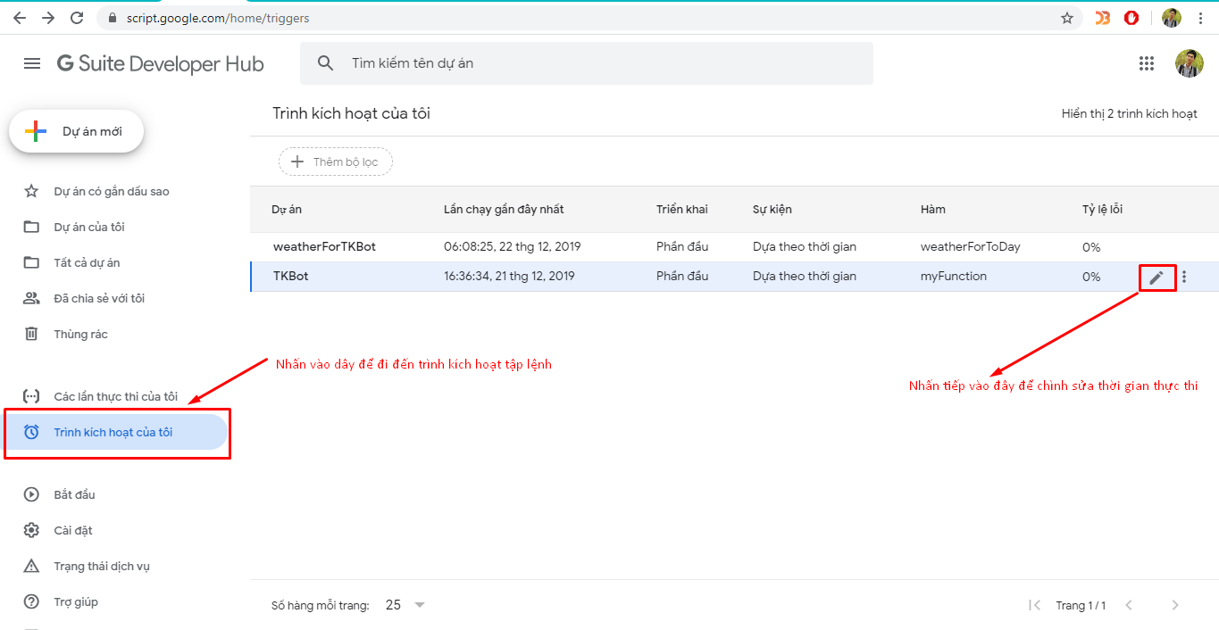 Ở đây chọn tên function cần thực thi để chạy hàng ngày