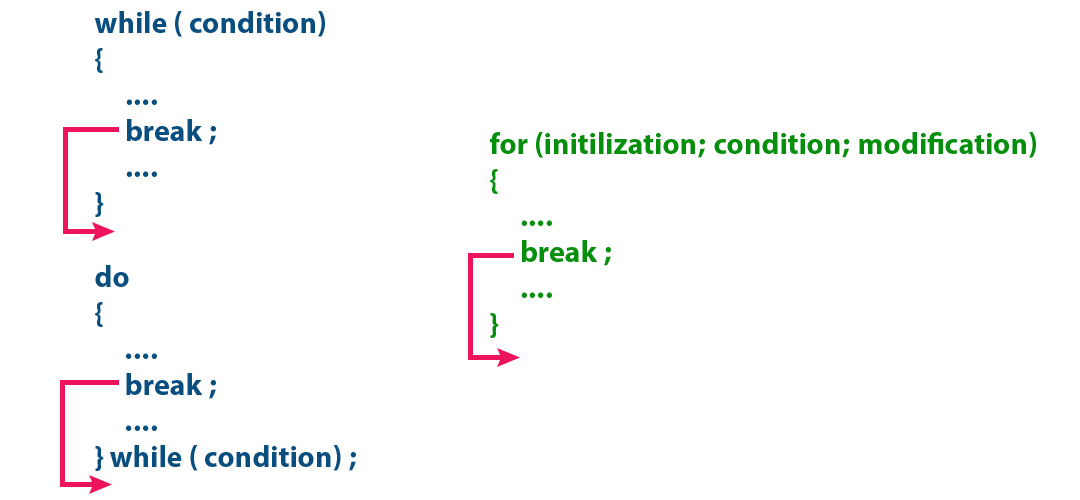 Một vòng lặp đang thực hiện nếu gặp lệnh break sẽ thoát vòng lặp ngay lập tức. Xem sơ đồ mô tả luồng hoạt động của vòng lặp khi có lệnh break dưới đây: