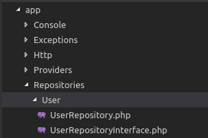 Trong thư mục User này ta thiết kế 2 file có tên là UserRepository.php và UserRepositoryInterface.php