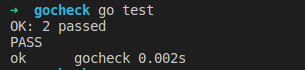Như chúng ta thấy, không có testcase nào được chạy do chúng ta chẳng viết bất cứ hàm nào để test Personal cả. Đổi lại như cũ và chạy go test, ta sẽ có 2 testcase của Person như sau.