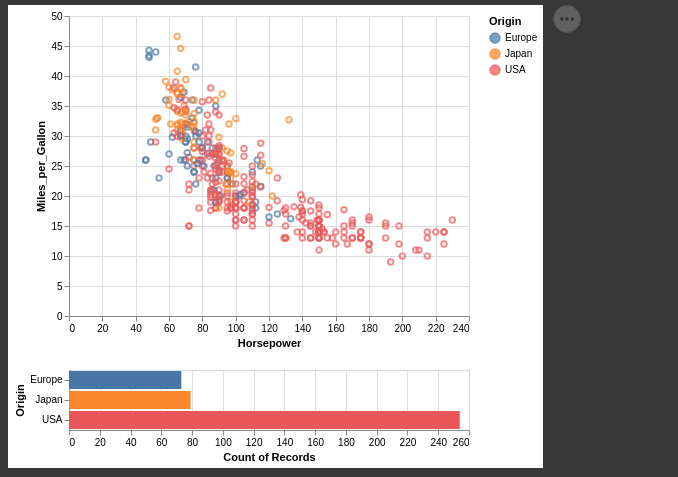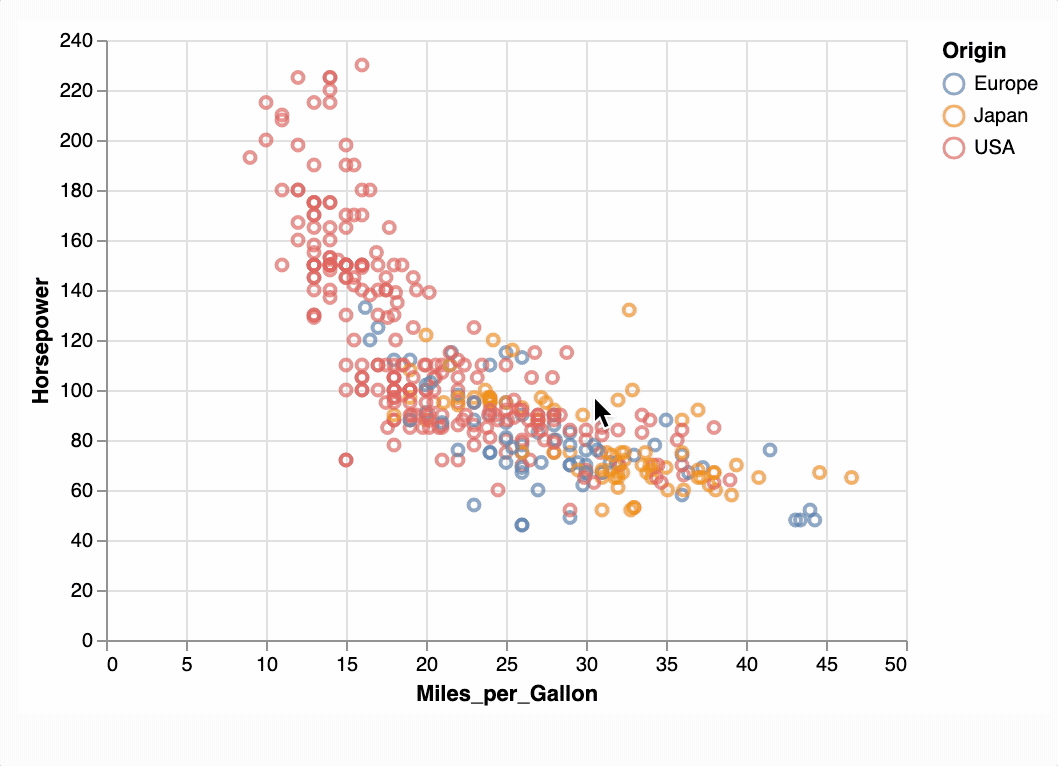 color=alt.condition(brush, 'Origin:N', alt.value('lightgray'))