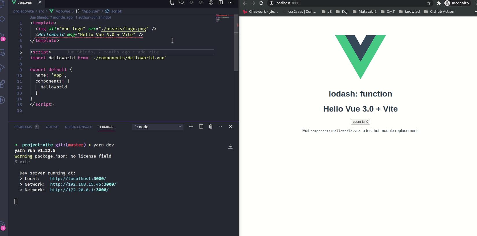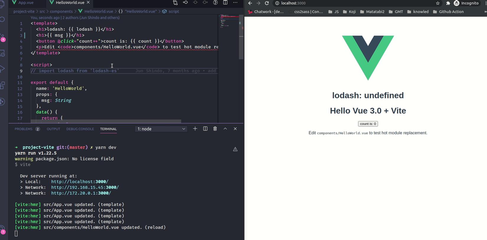 - Mình đã tiến hành dựng 2 con project 1 cái dùng vue-cli và vite để test, về cơ bản nó không có gì chỉ có sử dụng 1 library là lodash để thử import trong lúc dev xem thời gian chủ yếu như nào thôi